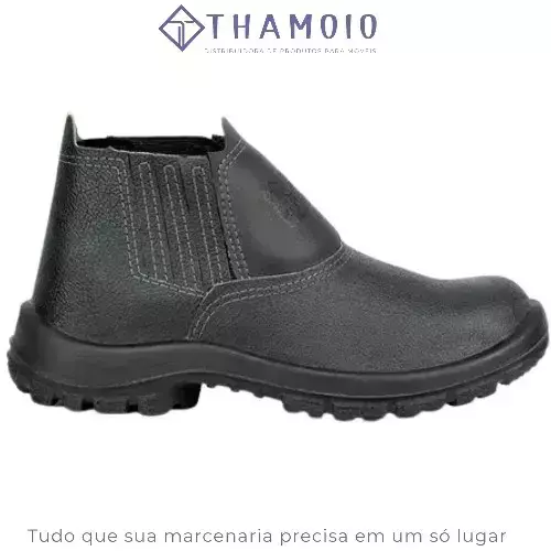 - Confecção em Couro Sintético. - Fechamento em Elástico. - Palmilha de montagem sintética, não tecido, costurada pelo sistema strobel. - Solado: Poliuretano Bidensidade - Costurada e Vulcanizada. - Acabamento: Vulcanizada (Obs: se tiver algumas rebarbas ou sensação de raspagem entre o couro e a sola não são defeitos pois o acabamento é pelo processo de Vulcanização). O que é botina vulcanizada? A vulcanização é um processo que consiste em levar a borracha do solado ao forno, processo em que a borracha sai quente e adere melhor na colagem, trazendo assim mais qualidade ao seu calçado. Qual é a importância da vulcanização? A vulcanização é um dos métodos, senão o mais importante, de cura da borracha. Esse processo garante à borracha propriedades excelentes, assim como DPC (Deformação Permanente por Compressão) muito baixa e elasticidade. Aprovado para: PROTEÇÃO DOS PÉS DO USUÁRIO CONTRA RISCOS DE NATUREZA LEVE E CONTRA AGENTES ABRASIVOS E ESCORIANTES. Observação: Calçado com resistência ao escorregamento em piso de cerâmica contaminado com lauril sulfato de sódio (detergente) (SRA). Garantia do vendedor: 30 dias